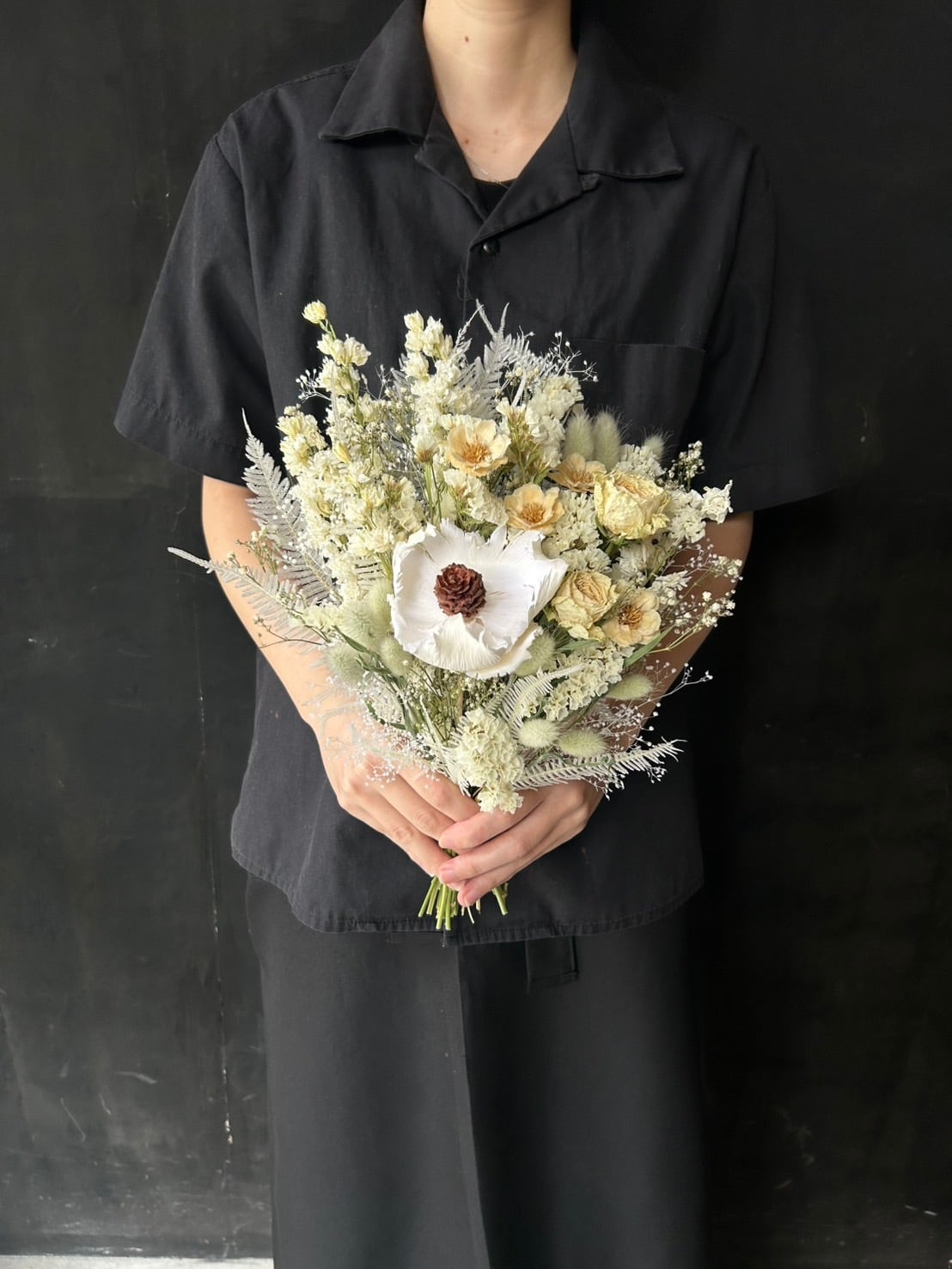 ドライフラワーはとてもデリケートな商品となってます。梱包には十分注意をしておりますが、配送中に花こぼれや多少の破損がある場合がございます。