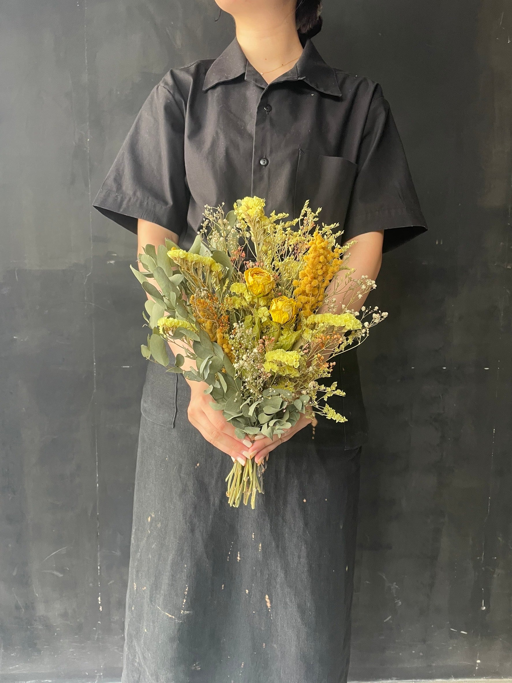 バラ ミモザ スターチス かすみ草(オレンジ染) ハブラシスターチス ユーカリ