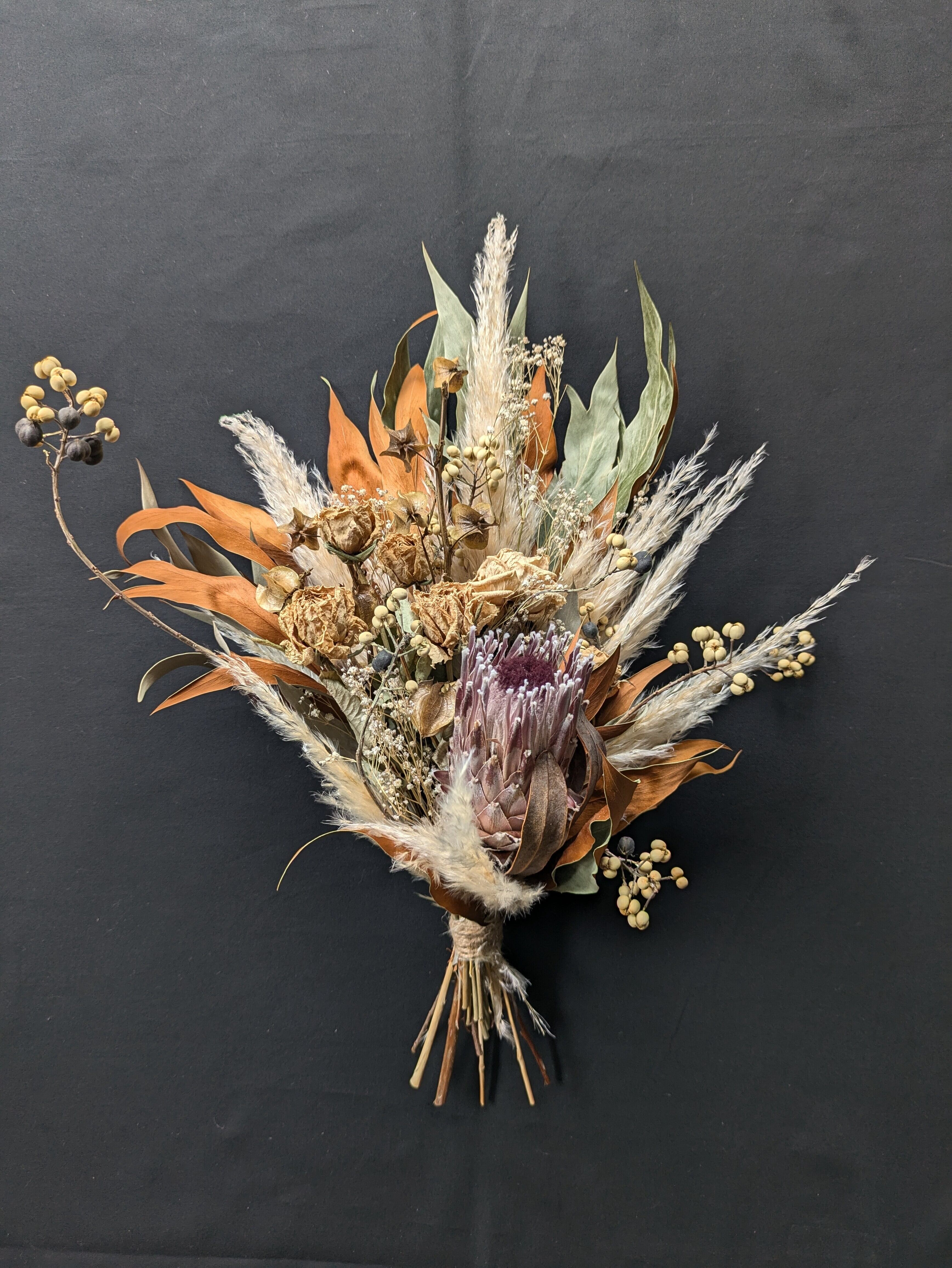 プロテア 南京ハゼ バラ カスミソウ パンパスグラス グレビリア クロホウズキ