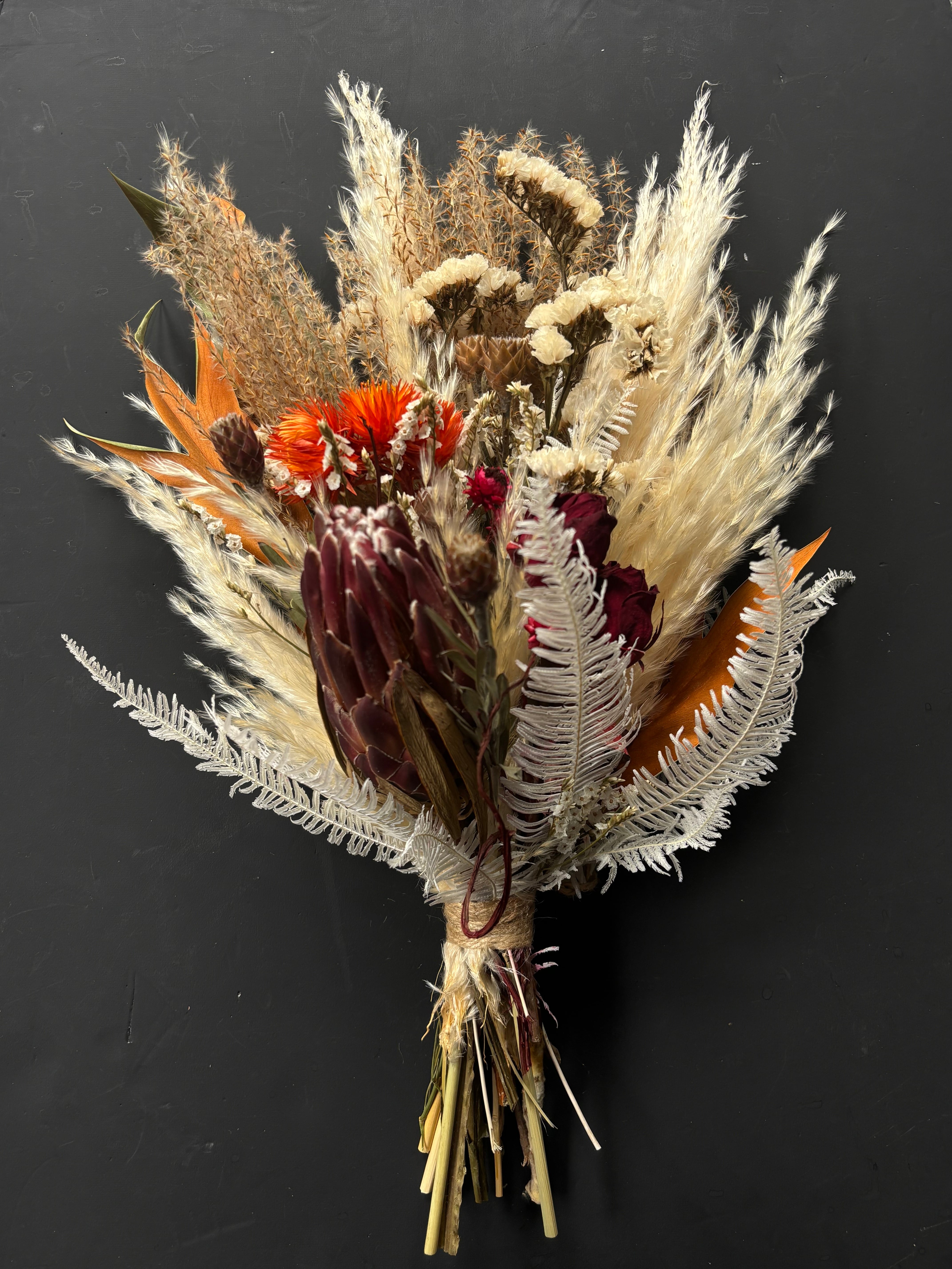 プロテア グレビリアゴールド パンパスグラス シルバーデージー バラ 山シダ スターチス プルモーサ アンモビューム ススキ