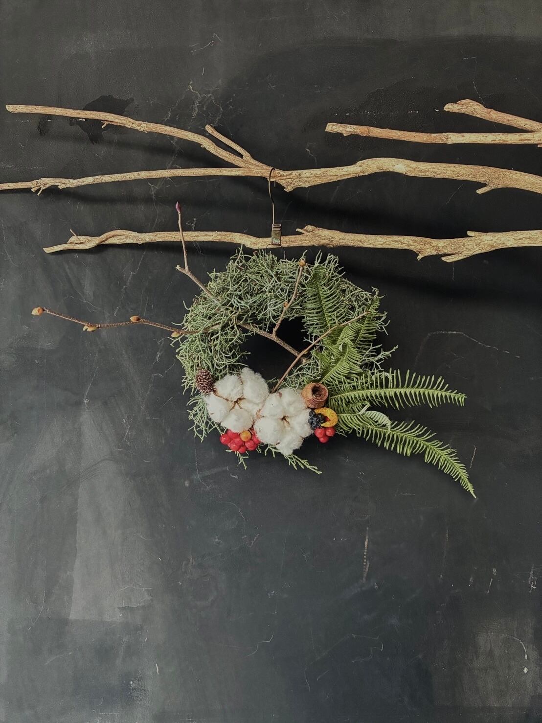 グリーンベースにコットンなどのシンプルなアレンジを加えました。