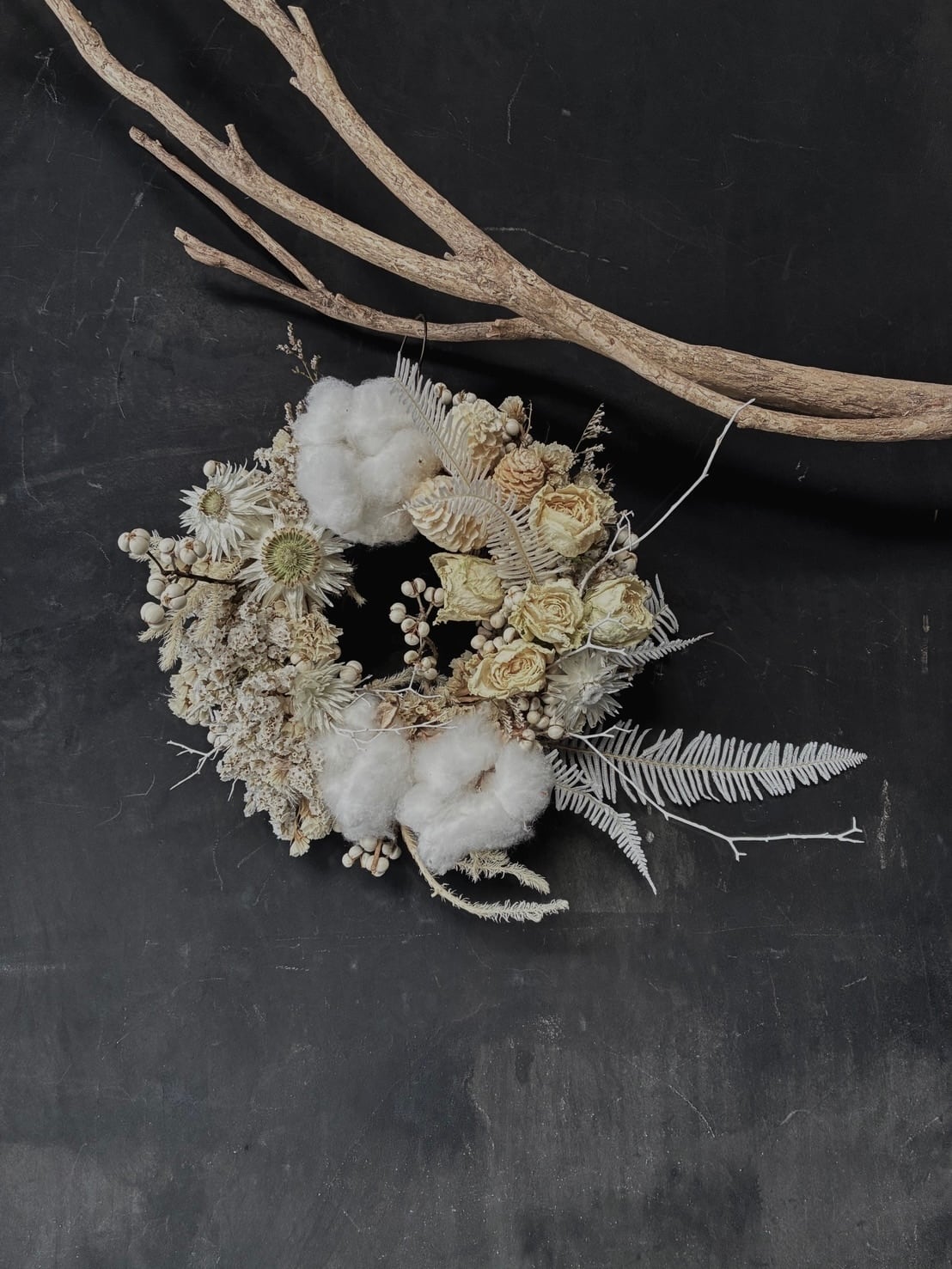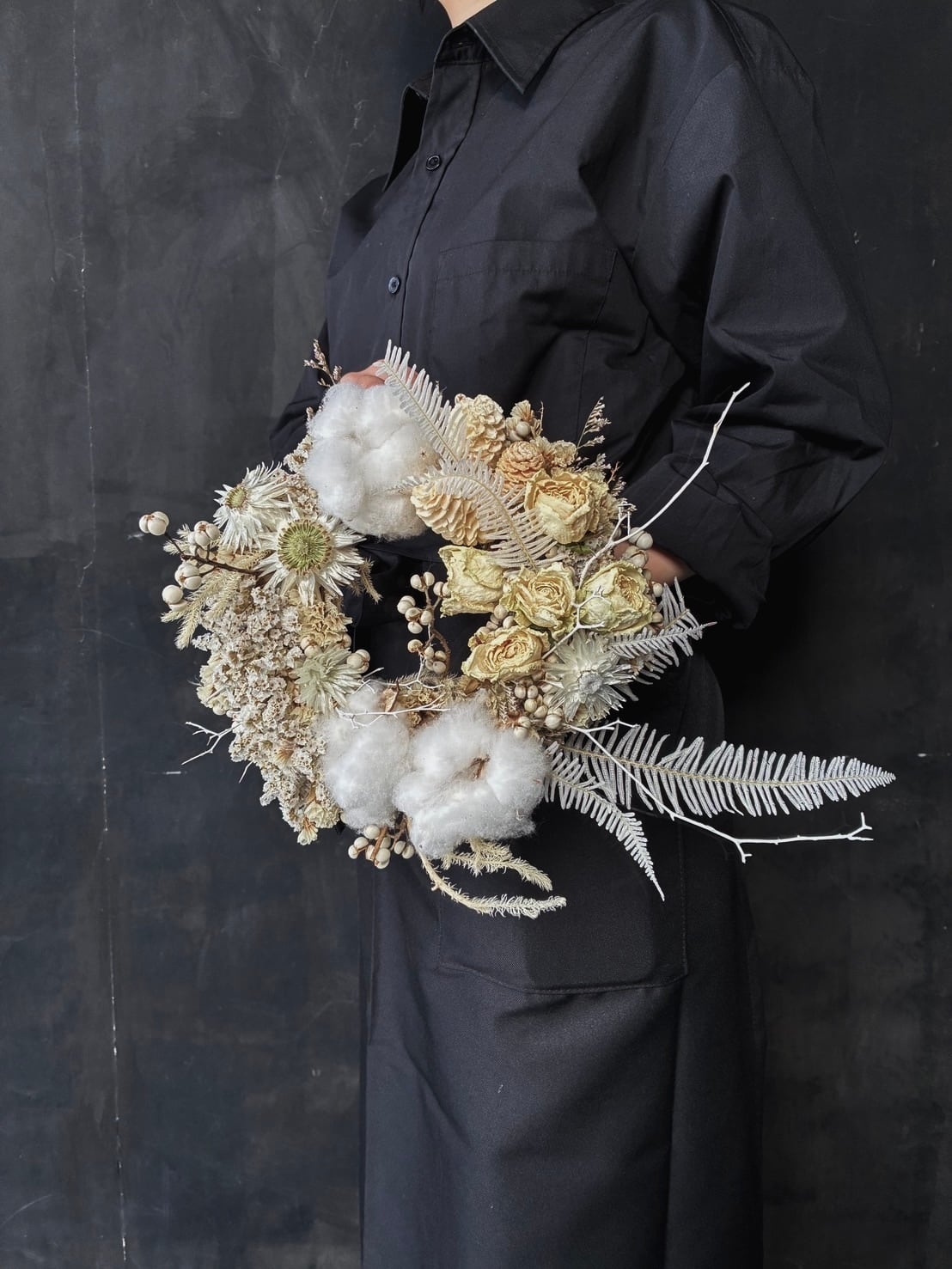 ドライフラワーはとてもデリケートな商品となってます。梱包には十分注意をしておりますが、配送中に花こぼれや多少の破損がある場合がございます。