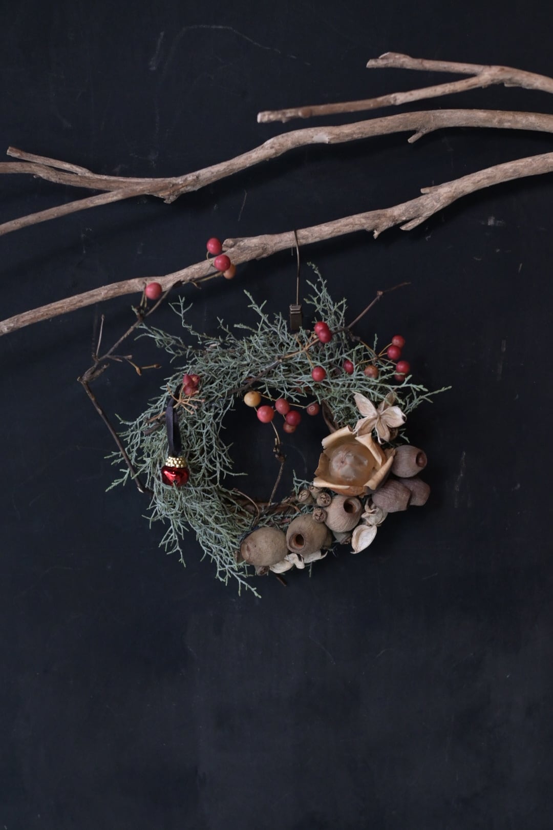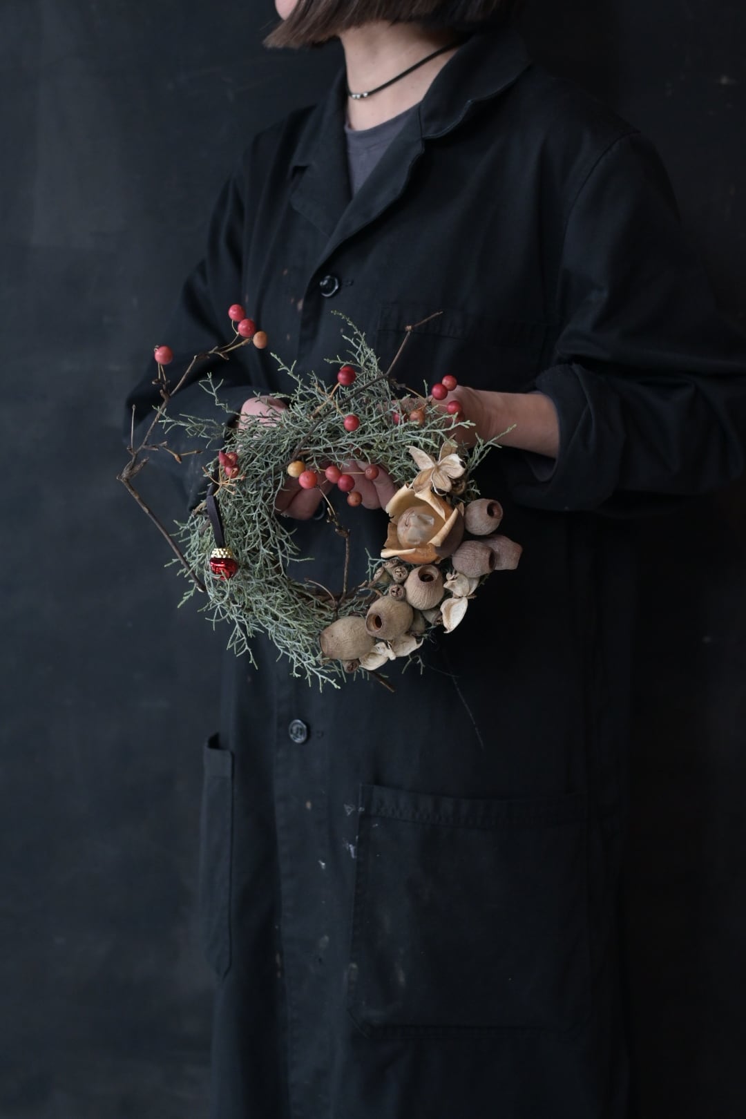 実物を沢山使用し、存在感もあるリースに仕上げました。