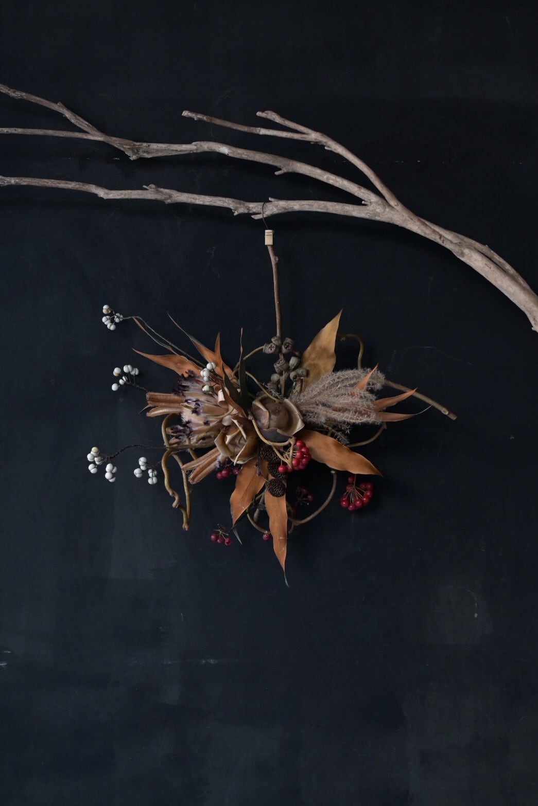 アンティーク色のドライフラワーん使用したリース。季節問わずに飾っていただけます。