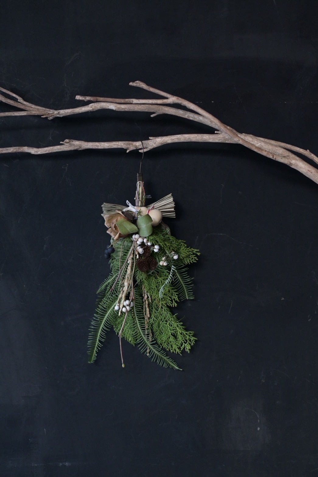 シンプルにグリーン花材を使用したしめ縄