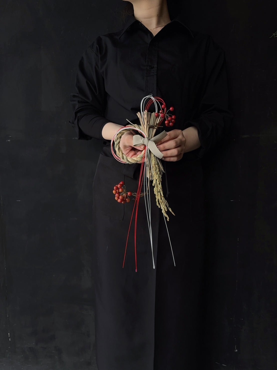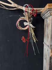 シンプルにコメとサンキライを使用し正月らしく紅白をイメージして作りました。