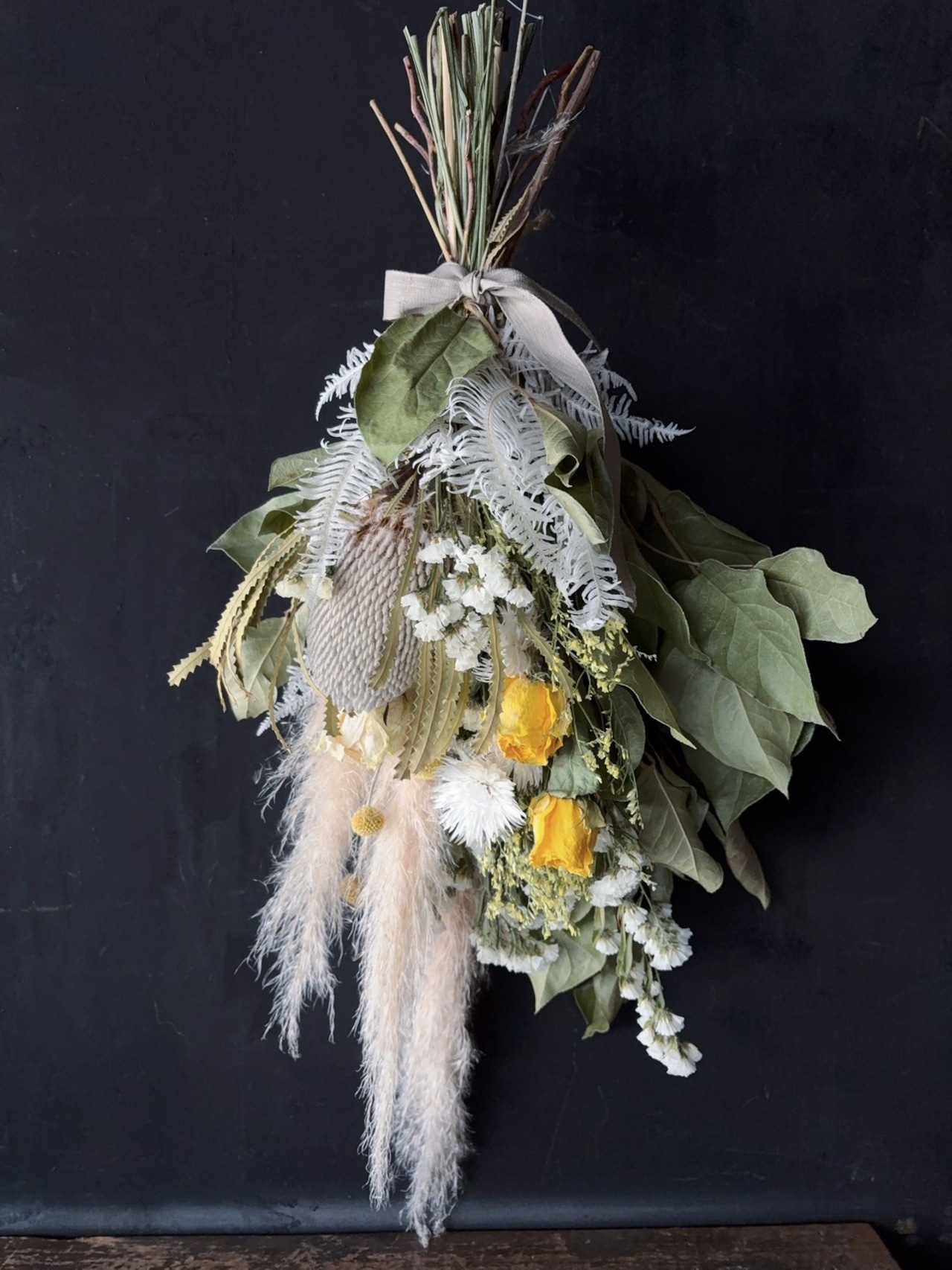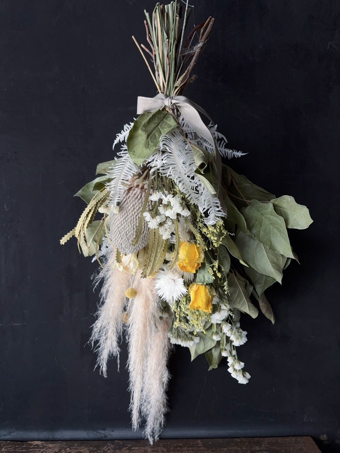バングシア バラ シルバーデージー スターチス レモンリーフ シダ クラスペディア パンパスグラス