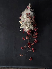 サンキライ をメインに使用し、存在感のあるスワッグに、吊るして サンキライ を楽しんで下さい。