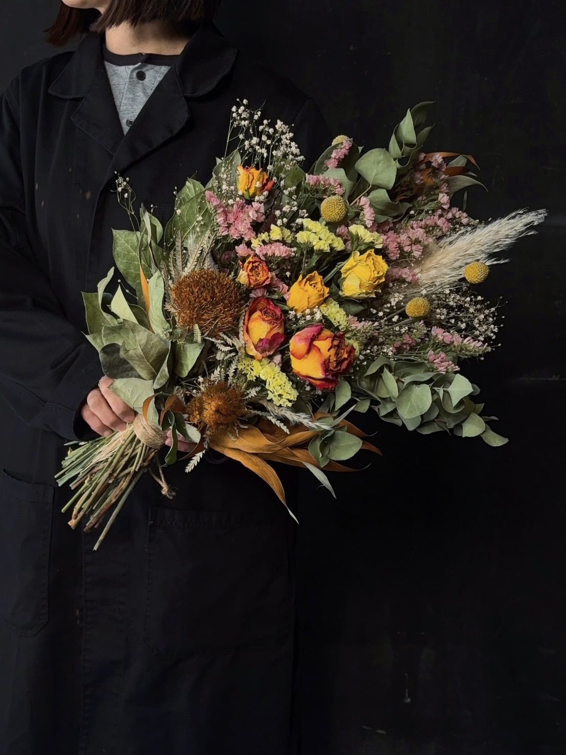 ドライフラワーはとてもデリケートな商品となってます。梱包には十分注意をしておりますが、配送中に花こぼれや多少の破損がある場合がございます。