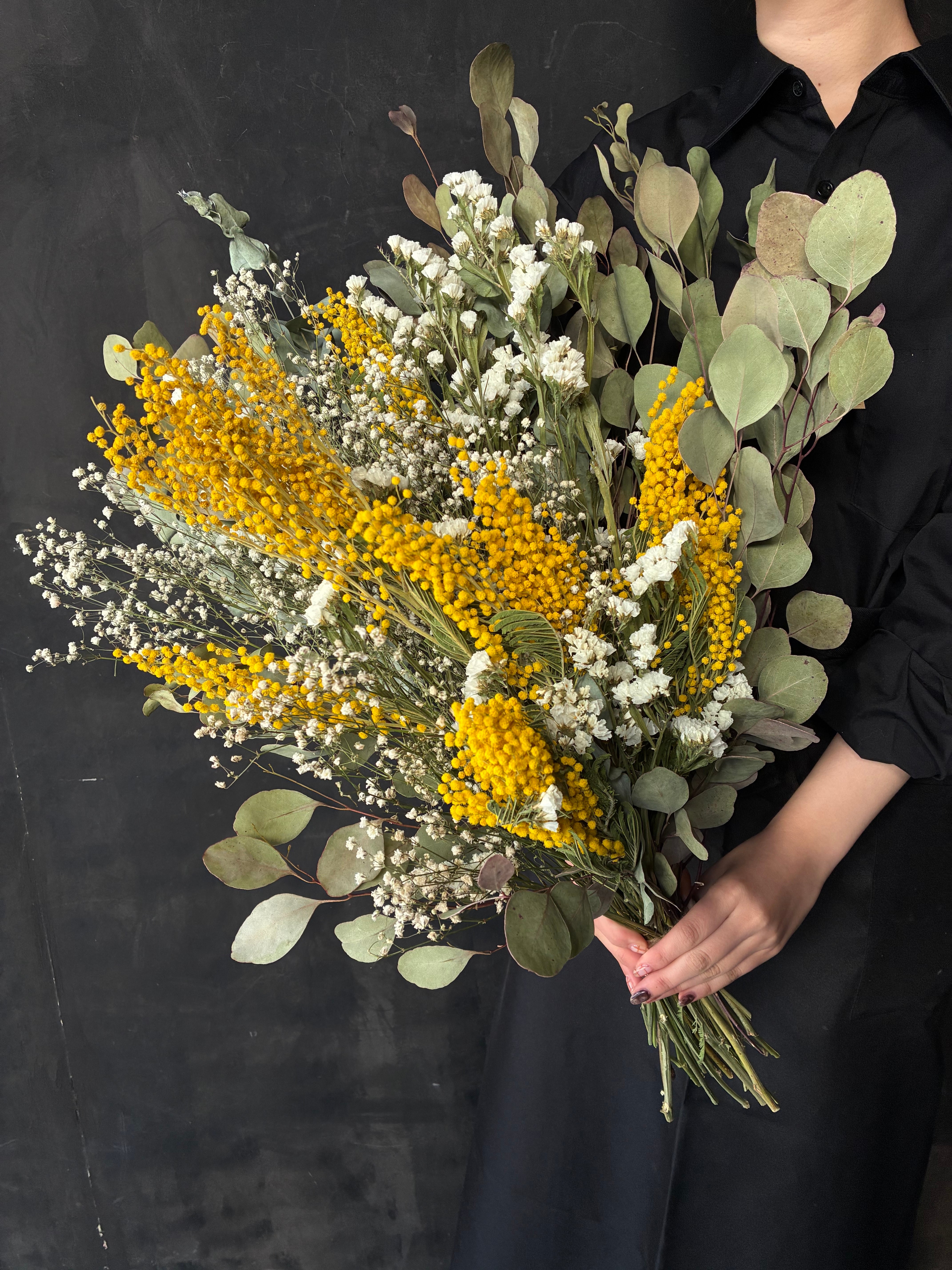 ミモザ ユーカリポポラス かすみ草 スターチス シダ