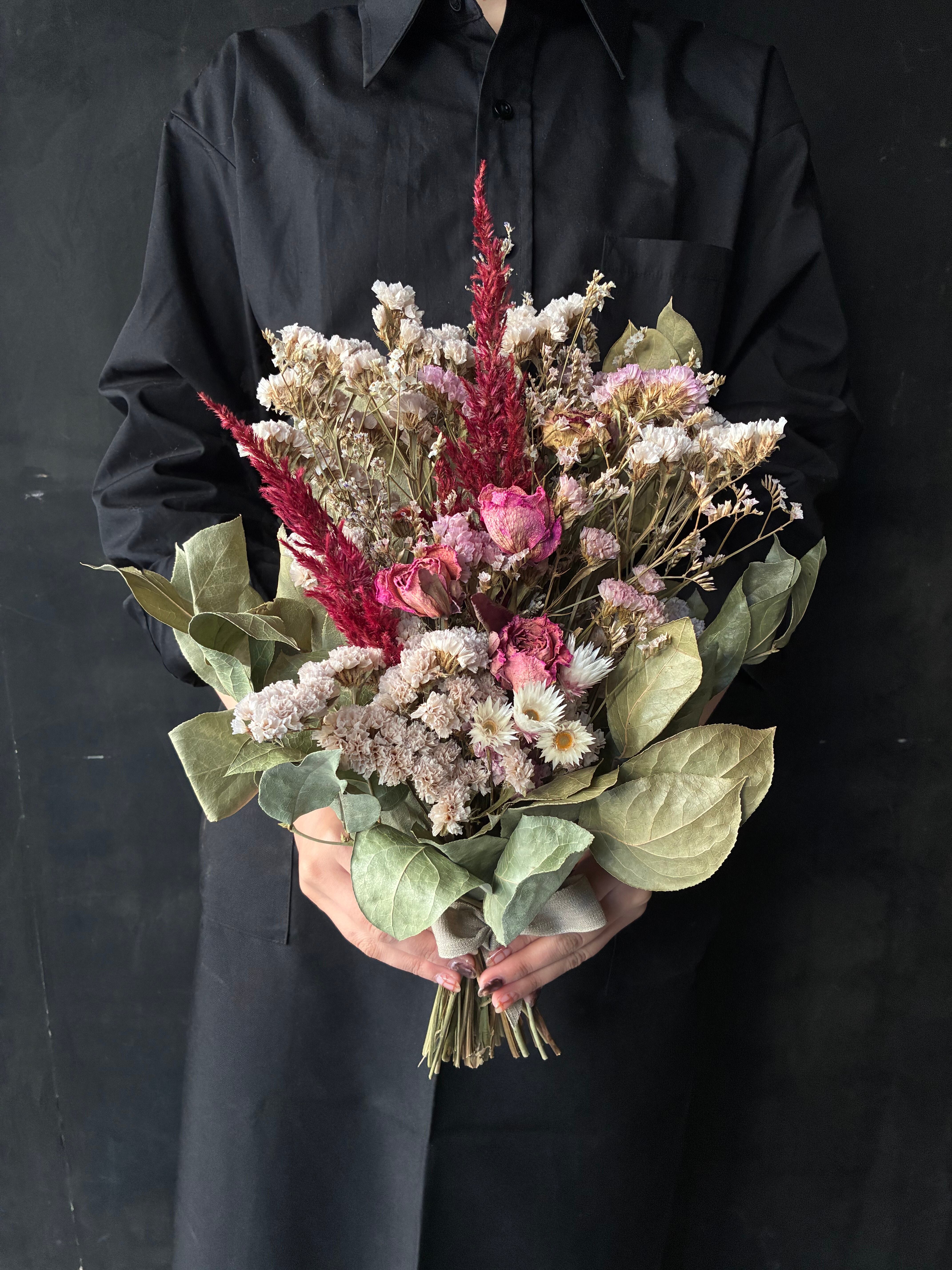 ドライフラワーはとてもデリケートな商品となってます。梱包には十分注意をしておりますが、配送中に花こぼれや多少の破損がある場合がございます。