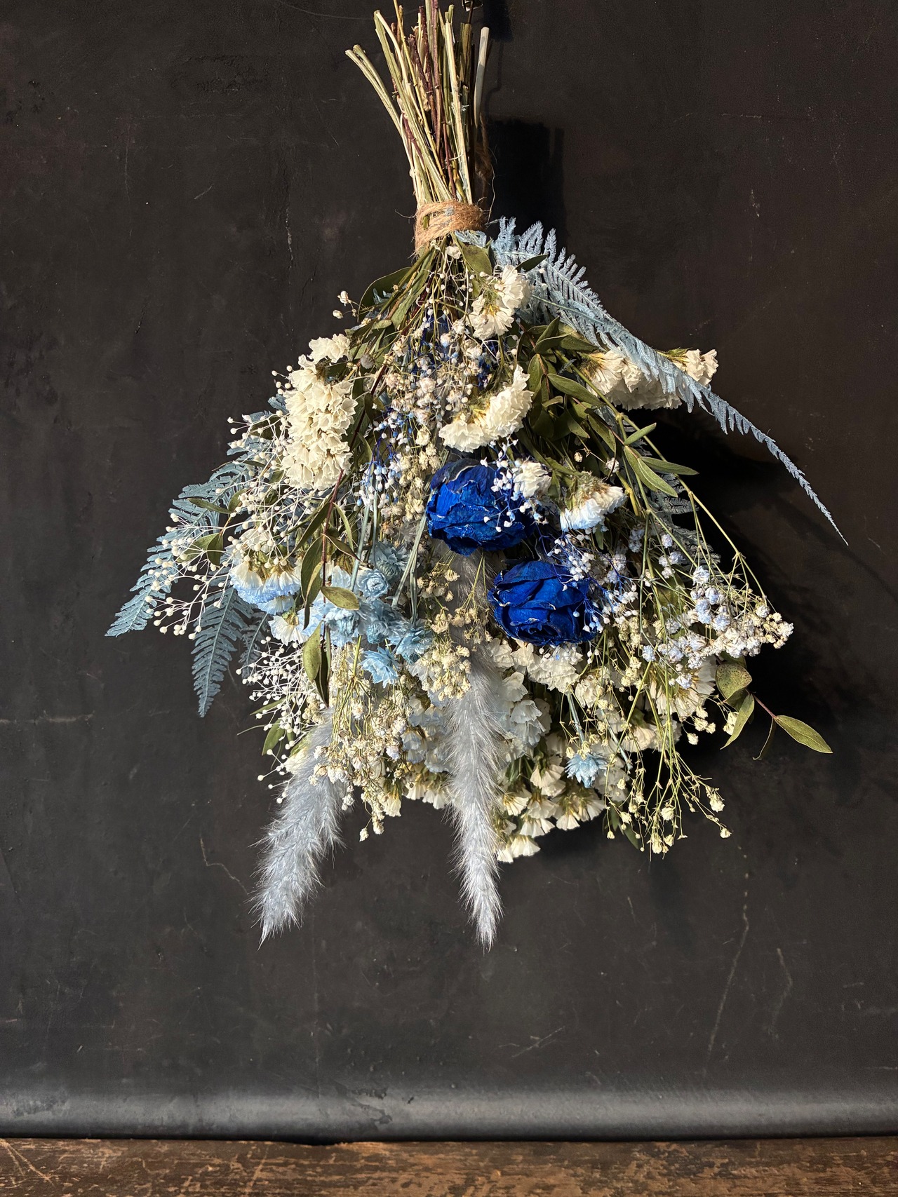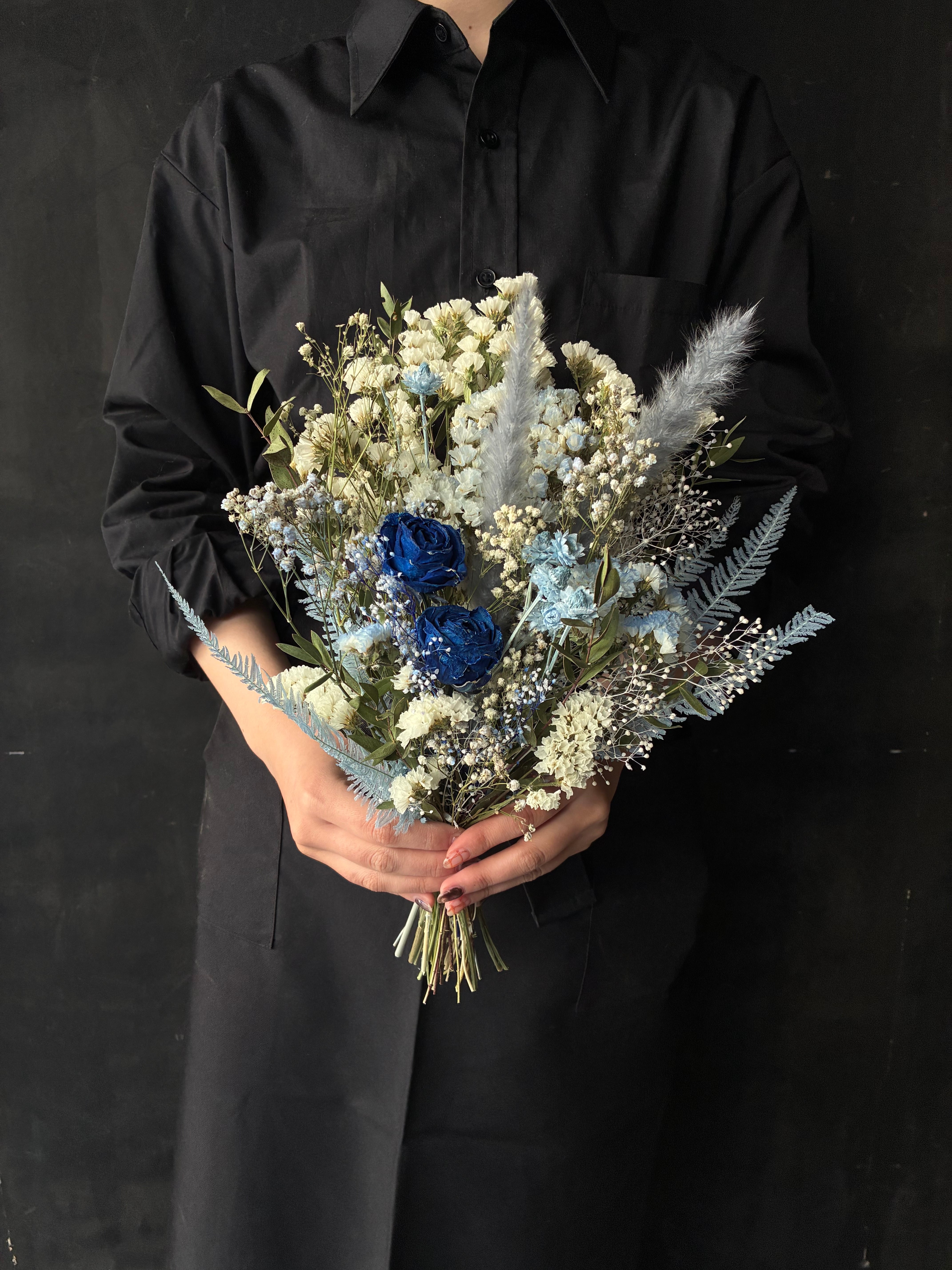 青薔薇をメインにブルー花材で可愛くまとめました。