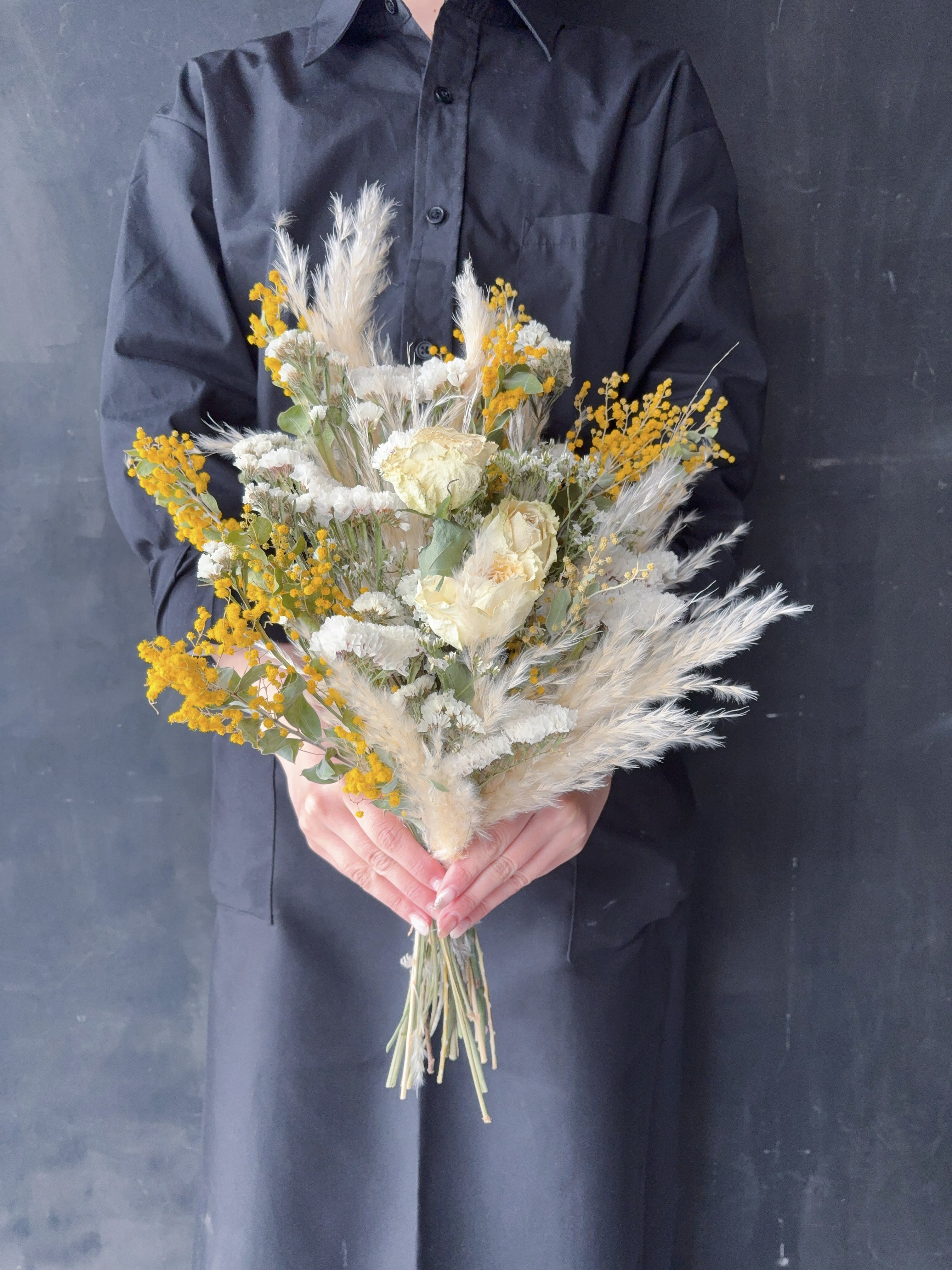 ドライフラワーはとてもデリケートな商品となってます。梱包には十分注意をしておりますが、配送中に花こぼれや多少の破損がある場合がございます。