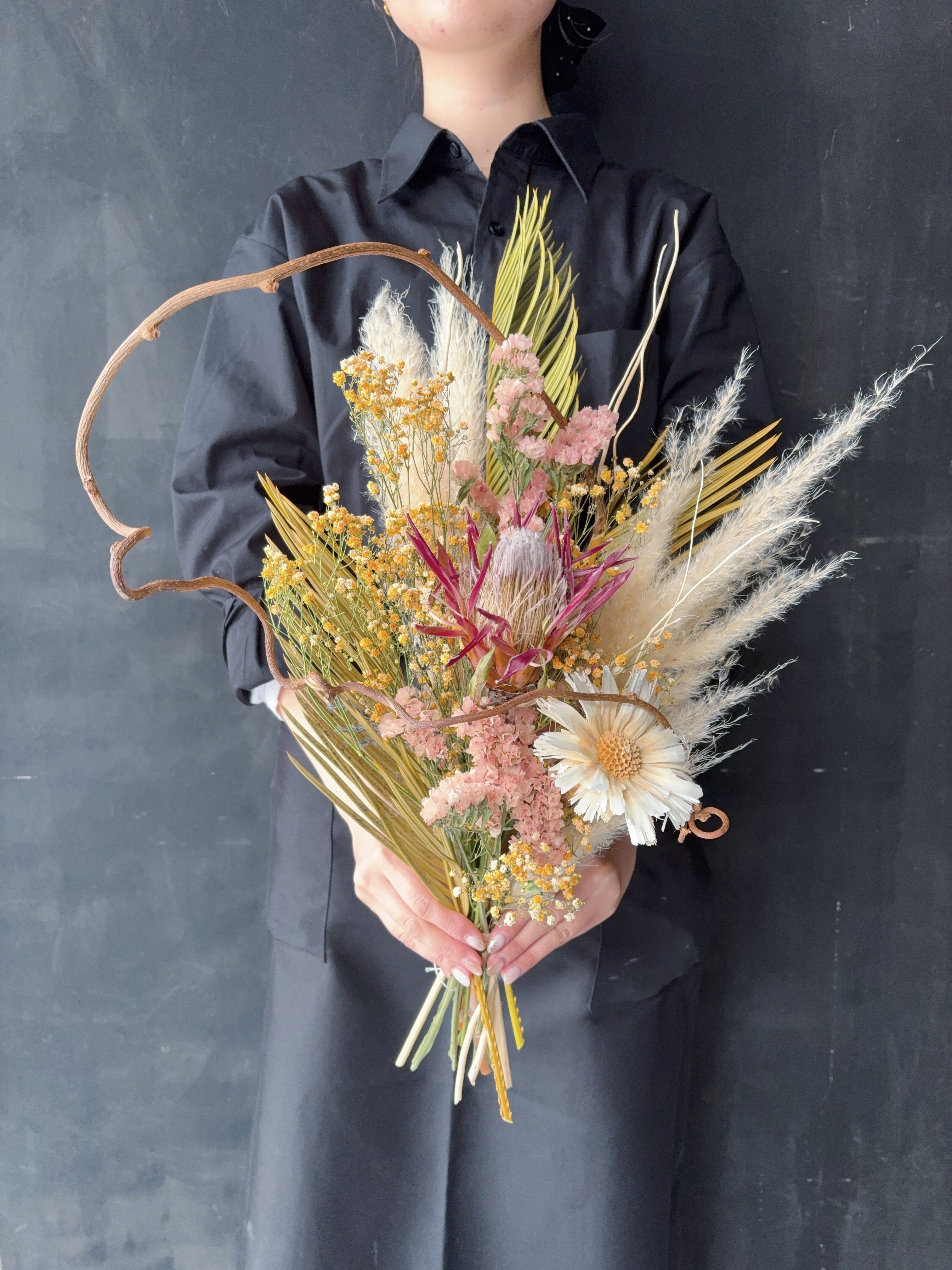 ドライフラワーはとてもデリケートな商品となってます。梱包には十分注意をしておりますが、配送中に花こぼれや多少の破損がある場合がございます。
