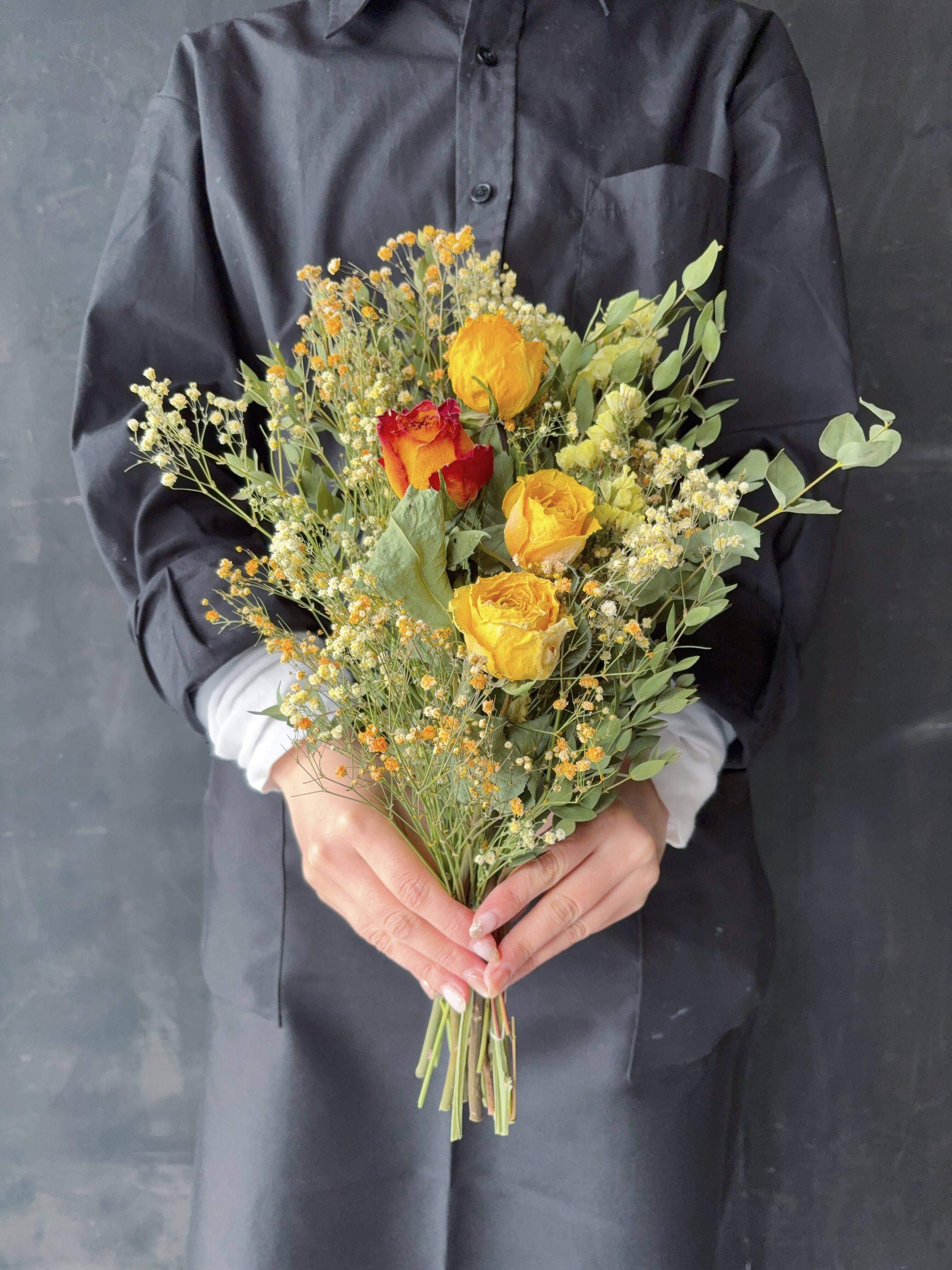 ドライフラワーはとてもデリケートな商品となってます。梱包には十分注意をしておりますが、配送中に花こぼれや多少の破損がある場合がございます。