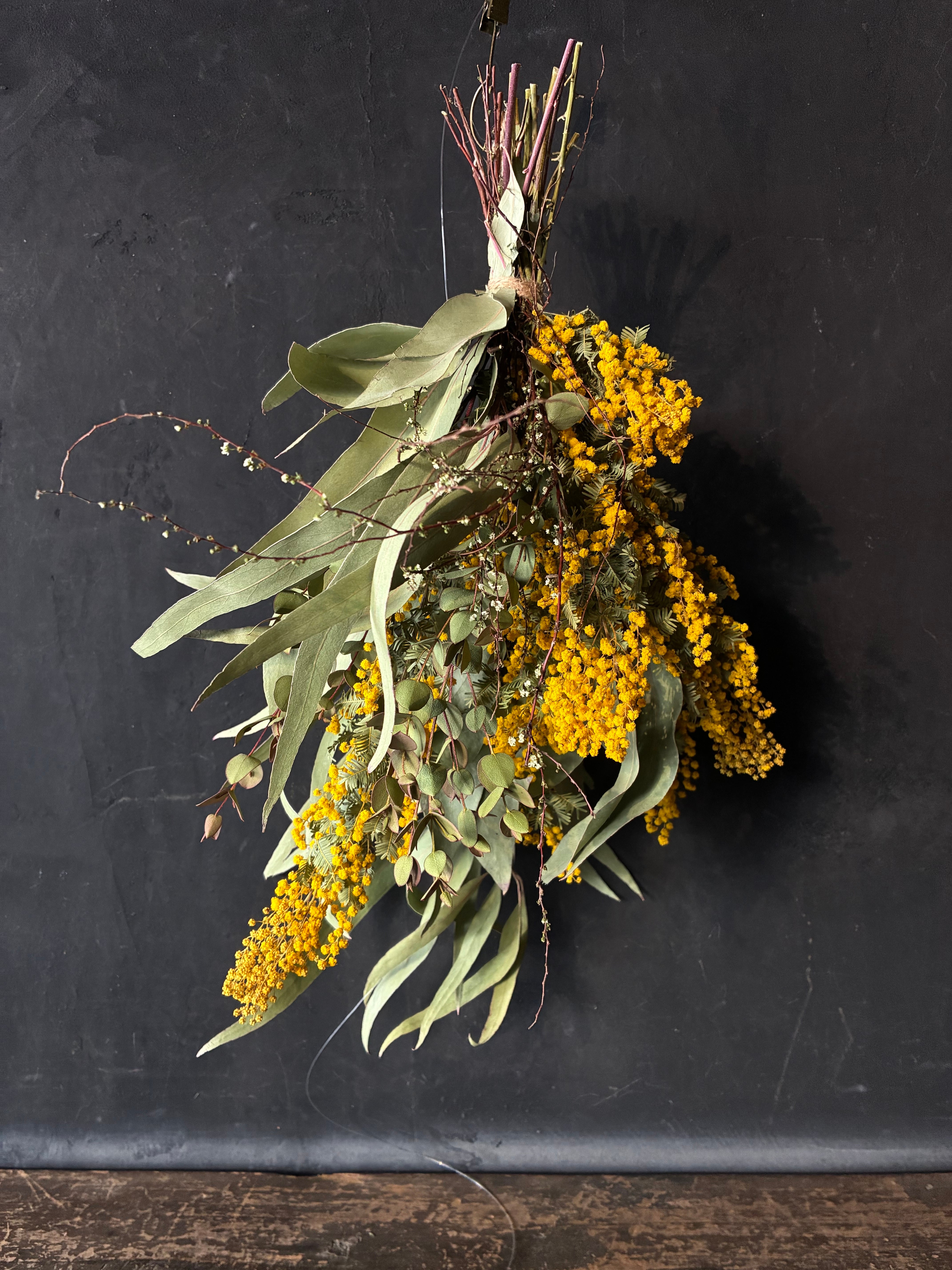 ミモザをメインにしたナチュラルなスワッグ。