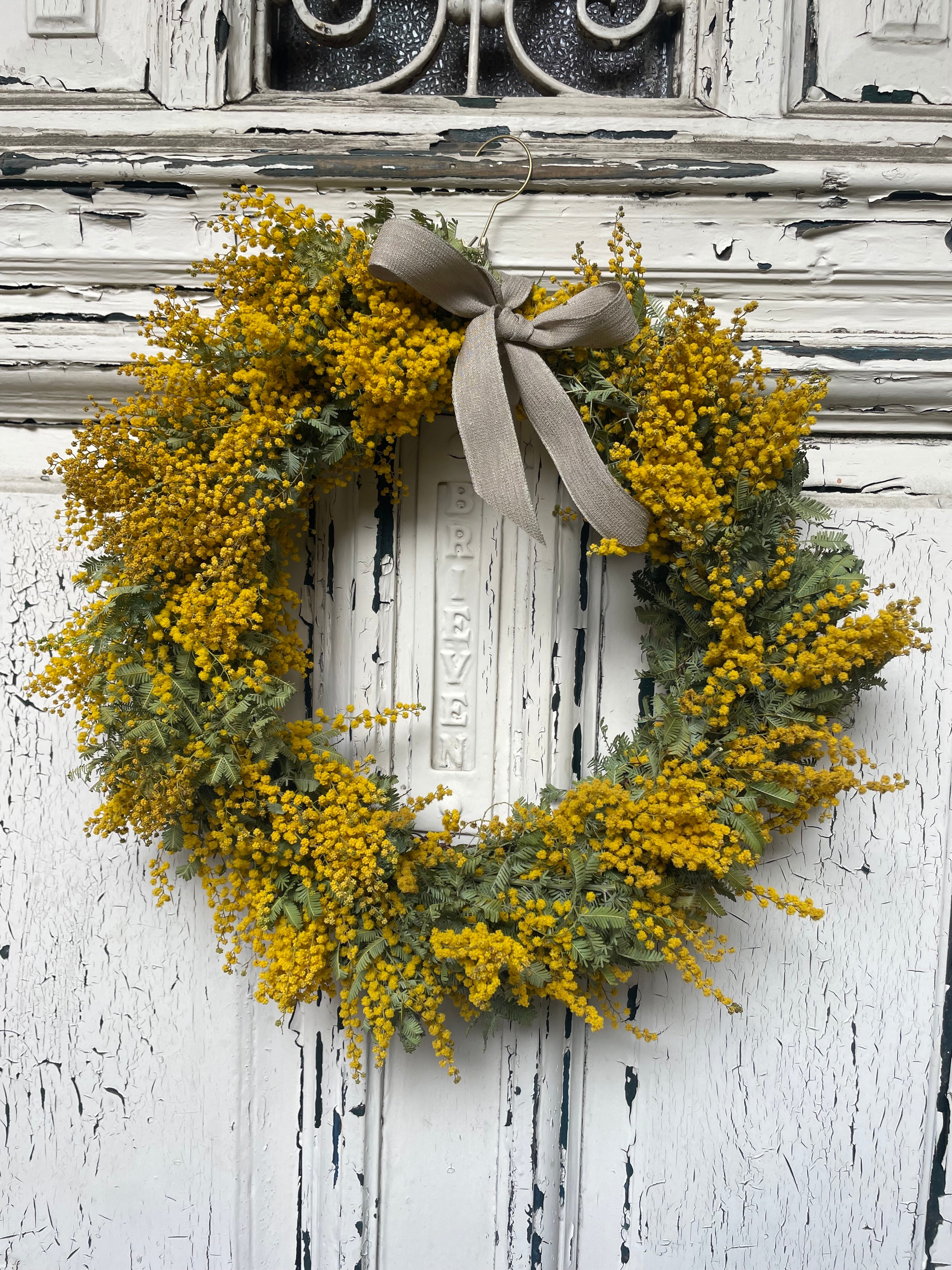 ミモザをメインにしっかり使用したシンプルミモザリース。