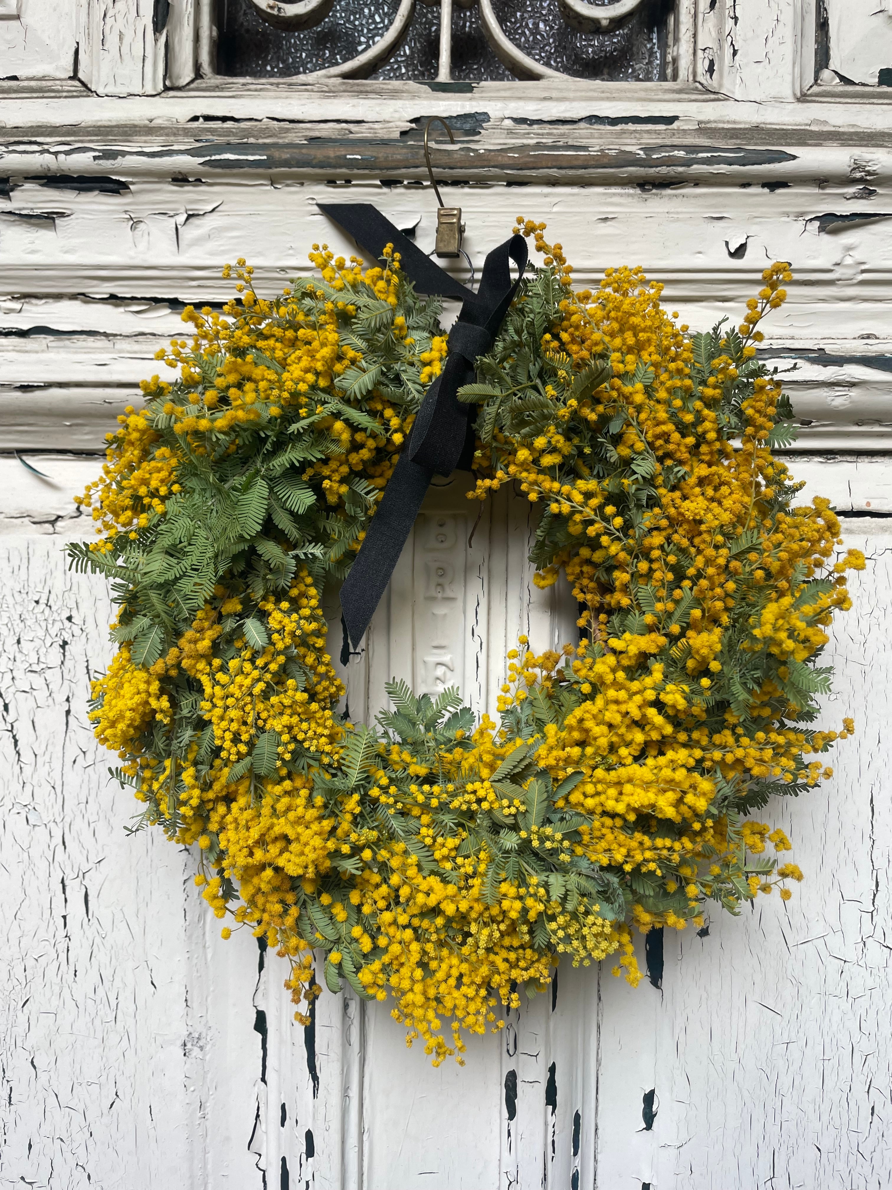 ミモザをメインにしっかり使用したシンプルミモザリース。