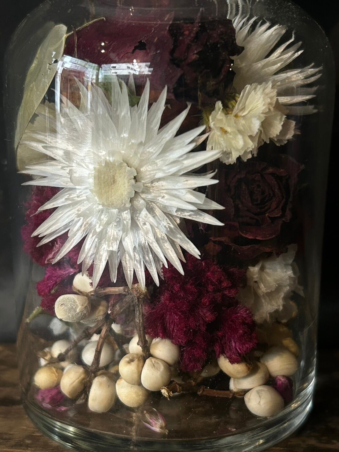 ドライフラワーはとてもデリケートな商品となってます。梱包には十分注意をしておりますが、配送中に花こぼれや多少の破損がある場合がございます。