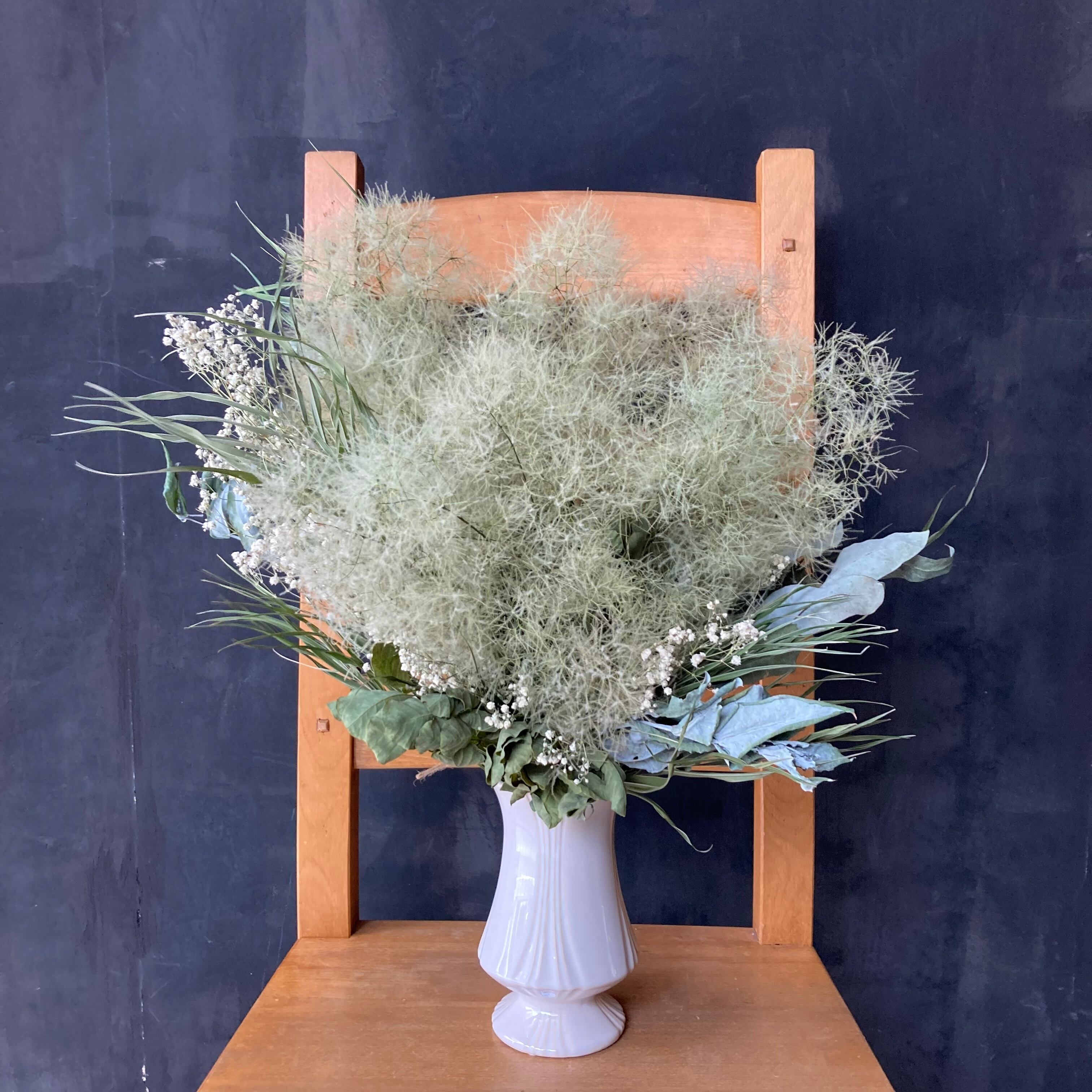 グリーンのスモークツリーをメインに、かすみ草や葉物でまとめたシンプルなスワッグです。