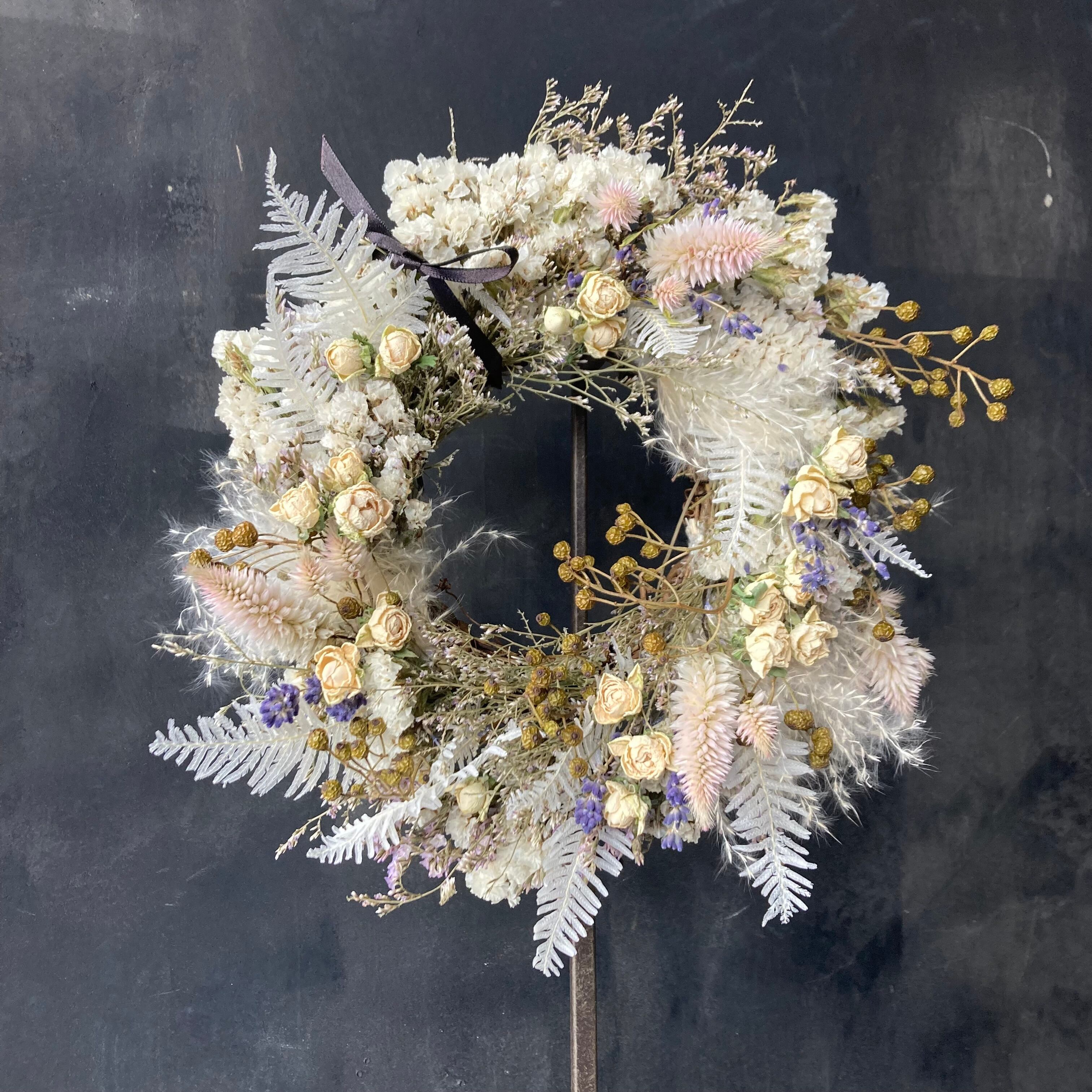 ドライフラワーはとてもデリケートな商品となってます。梱包には十分注意をしておりますが、配送中に花こぼれや多少の破損がある場合がございます。