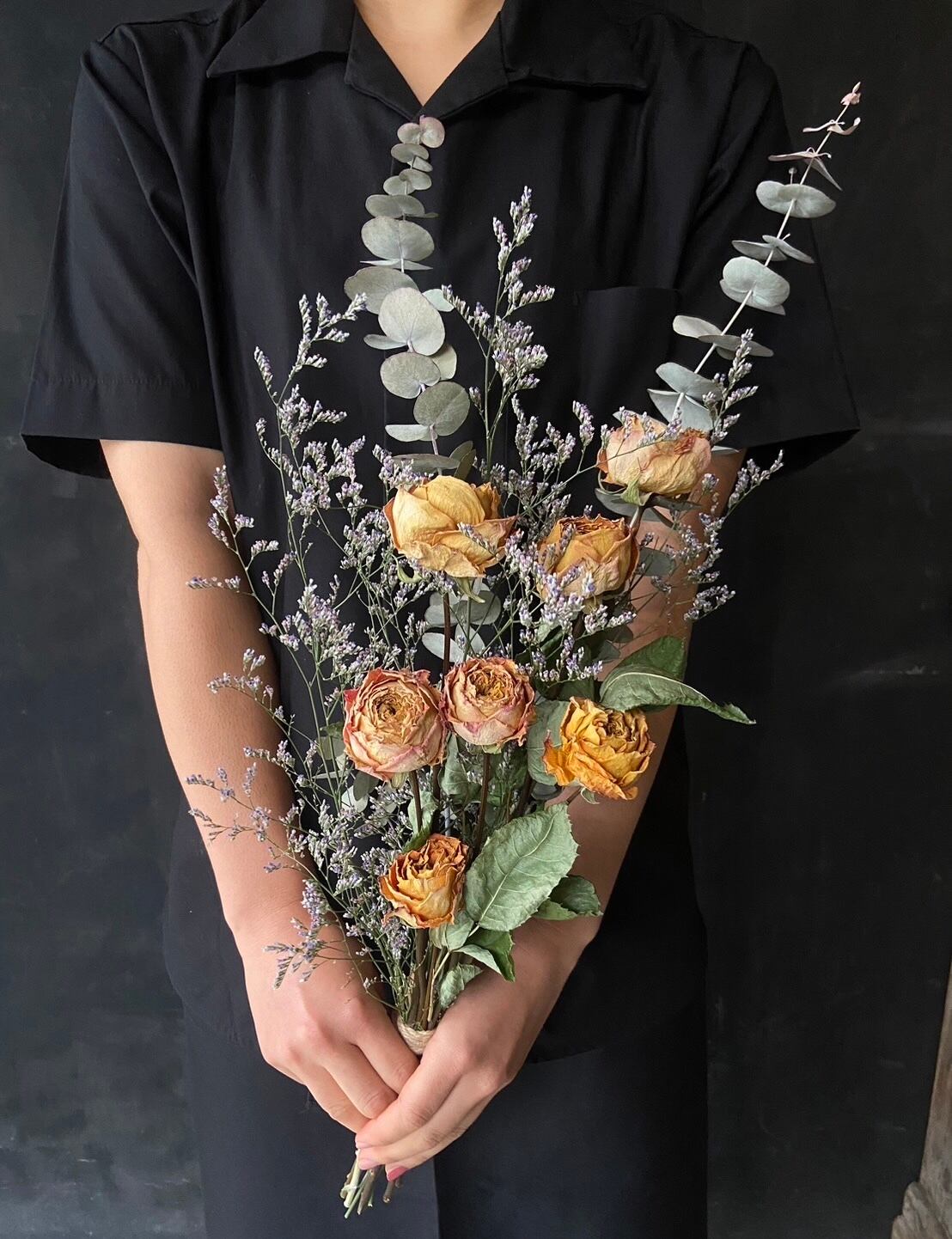 ドライフラワーはとてもデリケートな商品となってます。梱包には十分注意をしておりますが、配送中に花こぼれや多少の破損がある場合がございます。